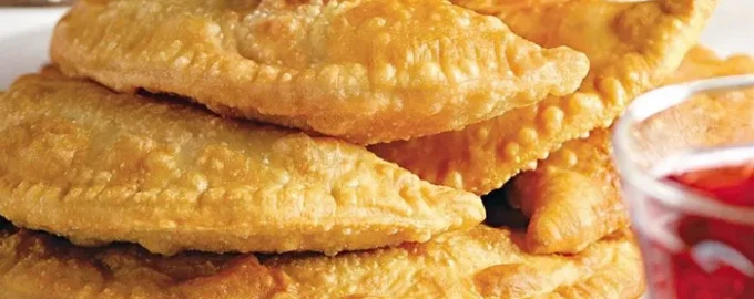 - Cesto rozdeľte na 8 rovnakých častí, z ktorých každú rozvaľkajte na asi 2-3 mm vysokú vrstvu. Na cesto dáme lyžicu náplne a polovicu z neho zarovnáme. Prikryte druhou polovicou a spojte okraje. Čebureky vyprážajte na panvici s dvoma alebo tromi šálkami oleja, pričom neustále prilievajte ďalší olej. Hotové pochúťky položte na papierové utierky, aby ste odstránili prebytočný tuk, a potom ich podávajte.
