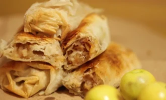 - Do čerešní nasypte cukor a premiešajte. Nakrájajte lavaš na pásiky ako na fotografii.